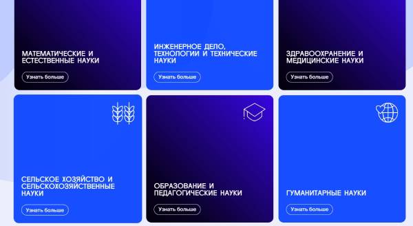 На сайте все научные специальности разделены на восемь областей знаний: «Математические и естественные науки», «Инженерное дело, технологии и технические науки», «Здравоохранение и медицинские науки», «Сельское хозяйство и сельскохозяйственные науки», «Образование и педагогические науки», «Гуманитарные науки», «Науки об обществе» и «Искусство и культура».