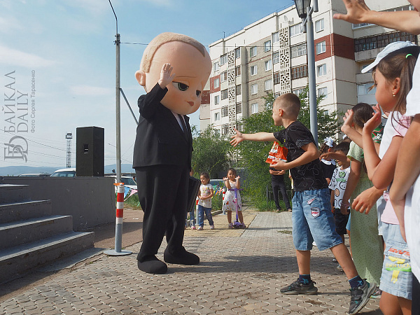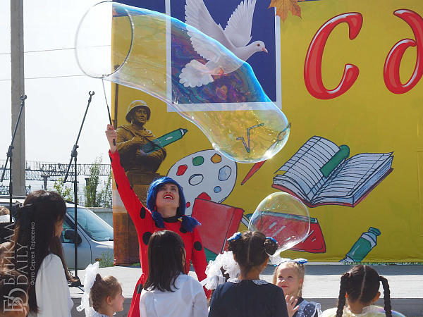 У сцены малышей развлекали «мыльным шоу». Клоуны даже провели мастер-класс по выдуванию мыльных пузырей. Аниматор в костюме Чебурашки фотографировался с более старшими школьниками и их родителями.