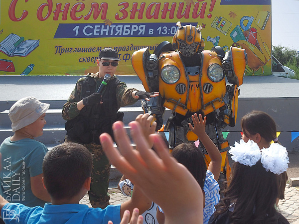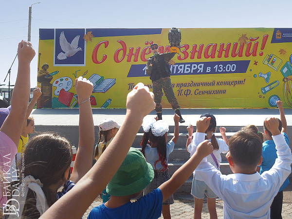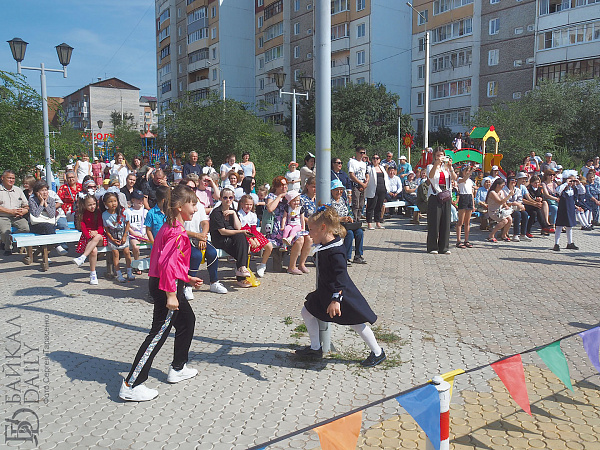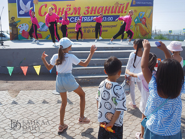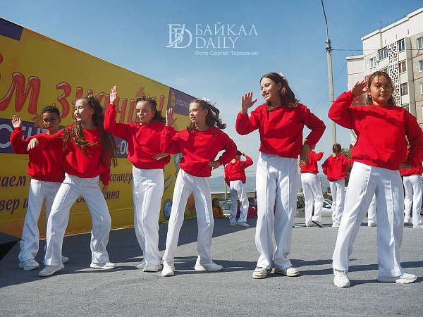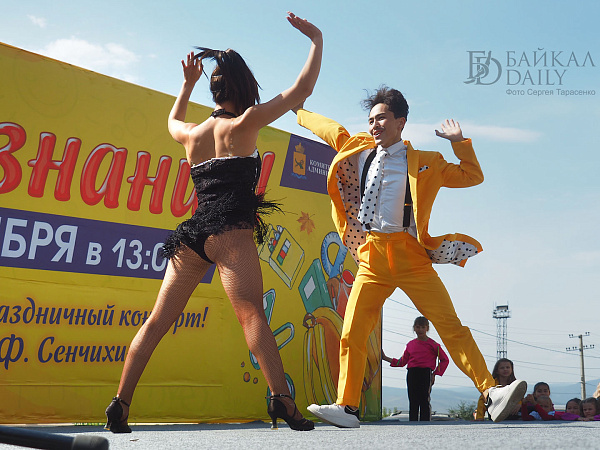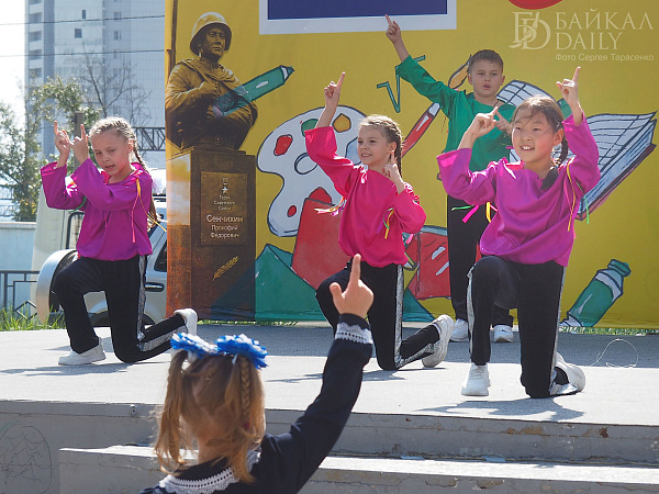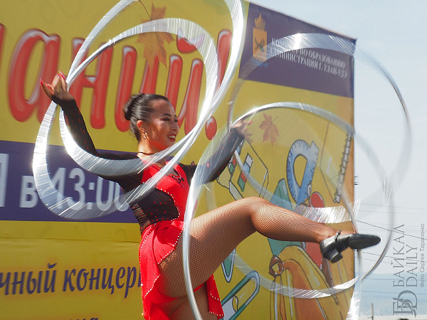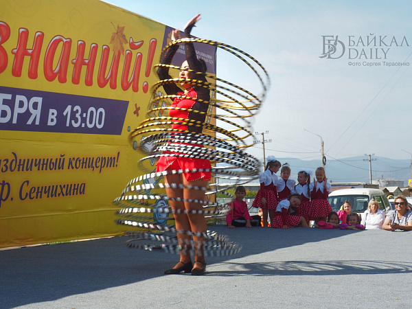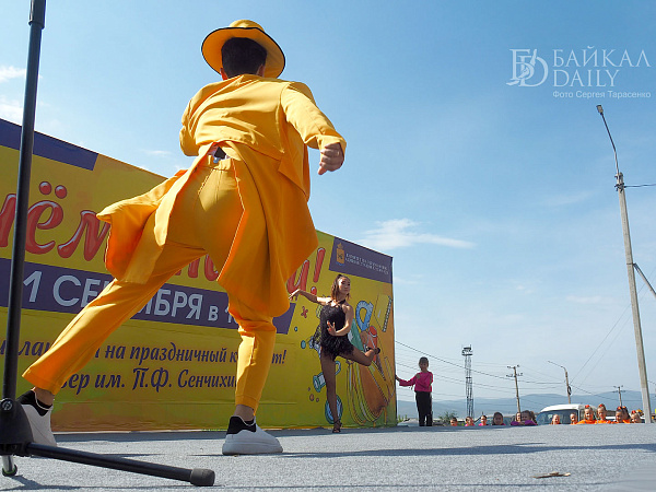 Ровно в час дня бодрый ведущий поздравил всех с Днём знаний, выдал школьникам витиеватое напутствие с кратким ленинским смыслом «учиться, учиться и учиться» и анонсировал первые номера. На концерт собрались детские коллективы и артисты со всего Железнодорожного района. Театр современного танца «Квартал Дэнс», ансамбль «Фантазия», певица Александра Кудряшкина (выпускница школы №26, кстати), артистка Бурятского цирка Екатерина Вахняк, ансамбли районного Дома творчества…