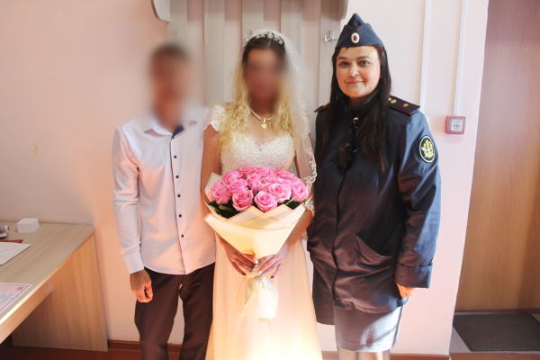 В улан-удэнской исправительной колонии №7 для женщин состоялась церемония бракосочетания. Перед женихом осуждённая предстала в белом платье и с большим букетом роз.