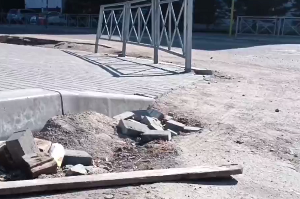 На улицах Жуковского и Хоца Намсараева в Улан-Удэ ещё весной затеяли грандиозный ремонт дороги и тротуаров. Там всё перекопали и в итоге на месте пешеходного перехода на Хоца Намсараева образовались ямы, через которые люди вынуждены перепрыгивать. Повсюду лежит строительный мусор и осколки старого дорожного полотна.