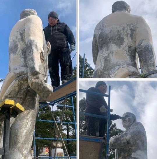 Недавно в Курумкане взялись за памятник Владимиру Ленину, который находится на аллее Героев социалистического труда. Состояние монумента, мягко говоря, оставляло желать лучшего – он облез и частично разрушился.