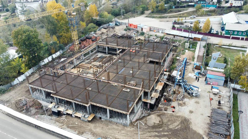Первый камень будущего дома культуры был заложен весной этого года. Рабочие демонтировали старый ДК и котельную, а также расчистили площадку под строительство. Сейчас ведутся работы по устройству каркаса здания, бетонирование перекрытий. На сегодня степень готовности объекта составляет 32%.