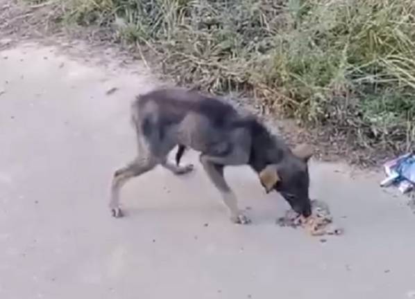 Тем не менее, собачка были настолько голодна, что переборола свой страх. Когда она видела еду в последний раз – неизвестно.