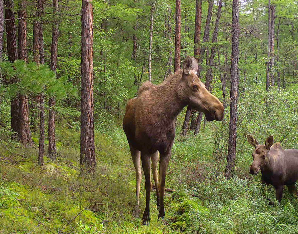 В Забайкальском крае на протяжении полугода фотоловушка, поставленная сотрудником научного отдела на территории Сохондинского заповедника, фиксировала местных лосей. На представленных кадрах видно, как в июле молодая лосиха привела к фотоловушке своего лосёнка, а в сентябре мимо фотоловушки прошёл сохатый, продемонстрировав свои рога.