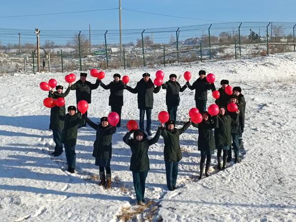 Флешмобом решили поздравить всех мам России 26 ноября сотрудники таможенного поста МАПП Кяхта. Они выстроились в форме сердца с красными шарами в руках.