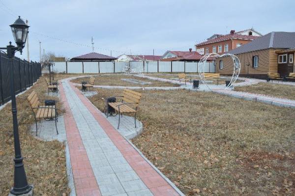 Здесь установили скамейки с фигурными вставками из влагостойкой фанеры, урны на ножках и фонарные столбы по всему периметру. На работы потратили 600 тысяч рублей.