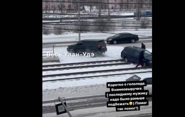 - Коротко о гололёде и взаимовыручке, - говорится в сообщении.