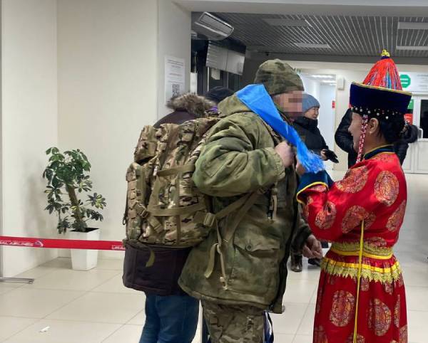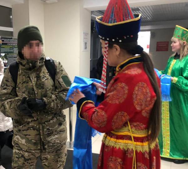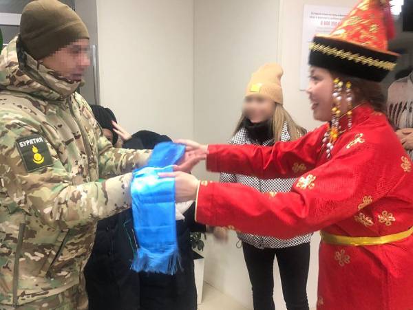 Сотрудники республиканского агентства лесного хозяйства всю неделю встречали участников специальной военной операции в международном аэропорту «Байкал». Лесники в национальных костюмах приветствовали бойцов и по старинному обычаю вручали им хадак.