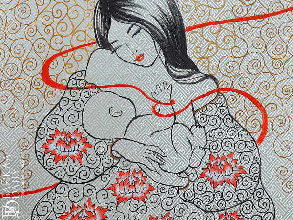 - Эта выставка вся о любви. Всю жизнь я впитываю красоту бурятской природы, атмосферу в кругу семьи, традиции моего народа. Вместо холста я использую ткань. На выставке представлена серия картин, где холстом послужила парча, которую много лет назад мне привезли родители из поездки в Монголию. Какие-то работы я пишу на полупрозрачном шифоне или шёлке. Мне кажется, эти материалы подчёркивают уникальность бурятской культуры, её утончённую глубокую красоту, - рассказала Номин.