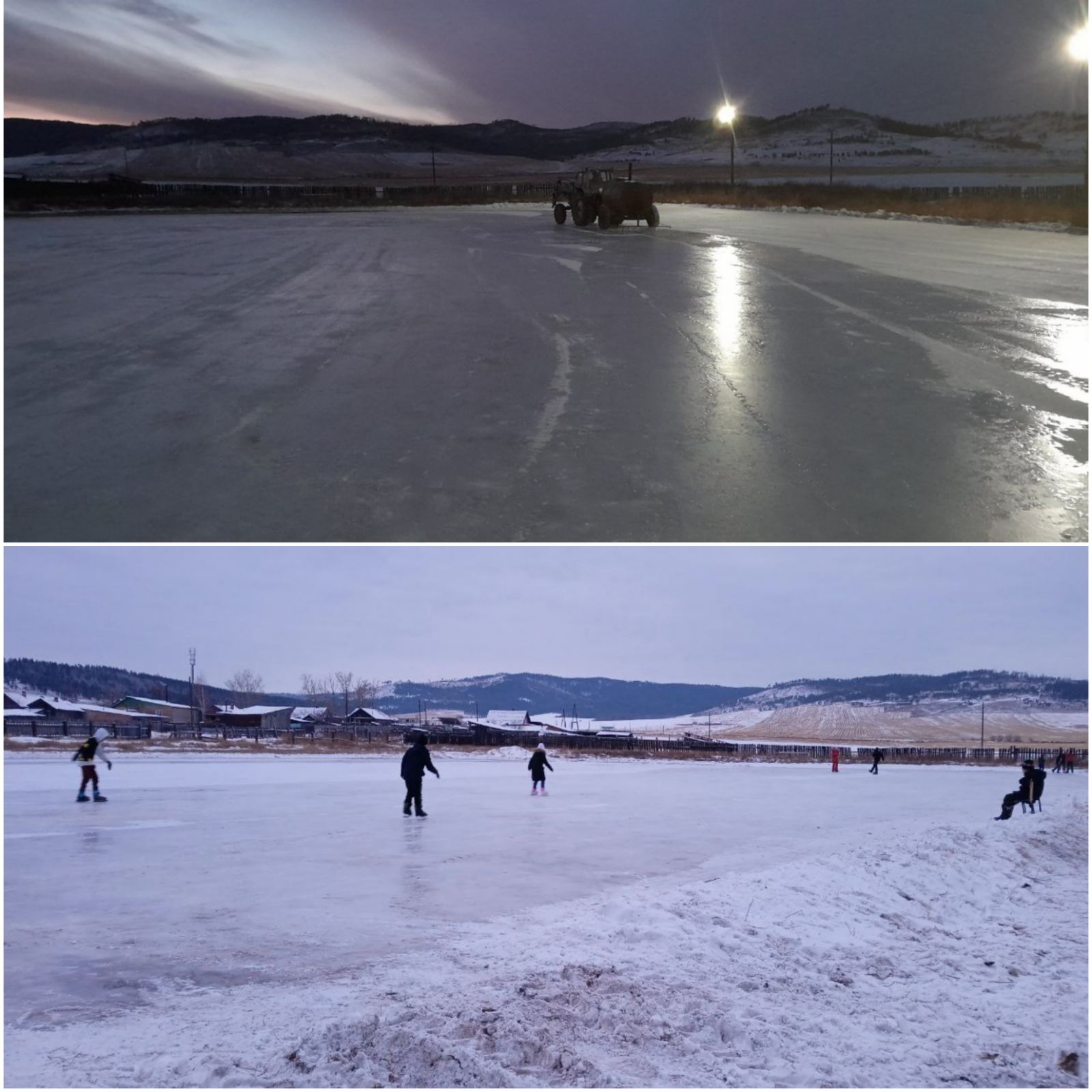 Перед Новым годом жители тарбагатайского села Верхний Жирим своими силами залили каток. Ледовая площадка появилась на стадионе местной СОШ.