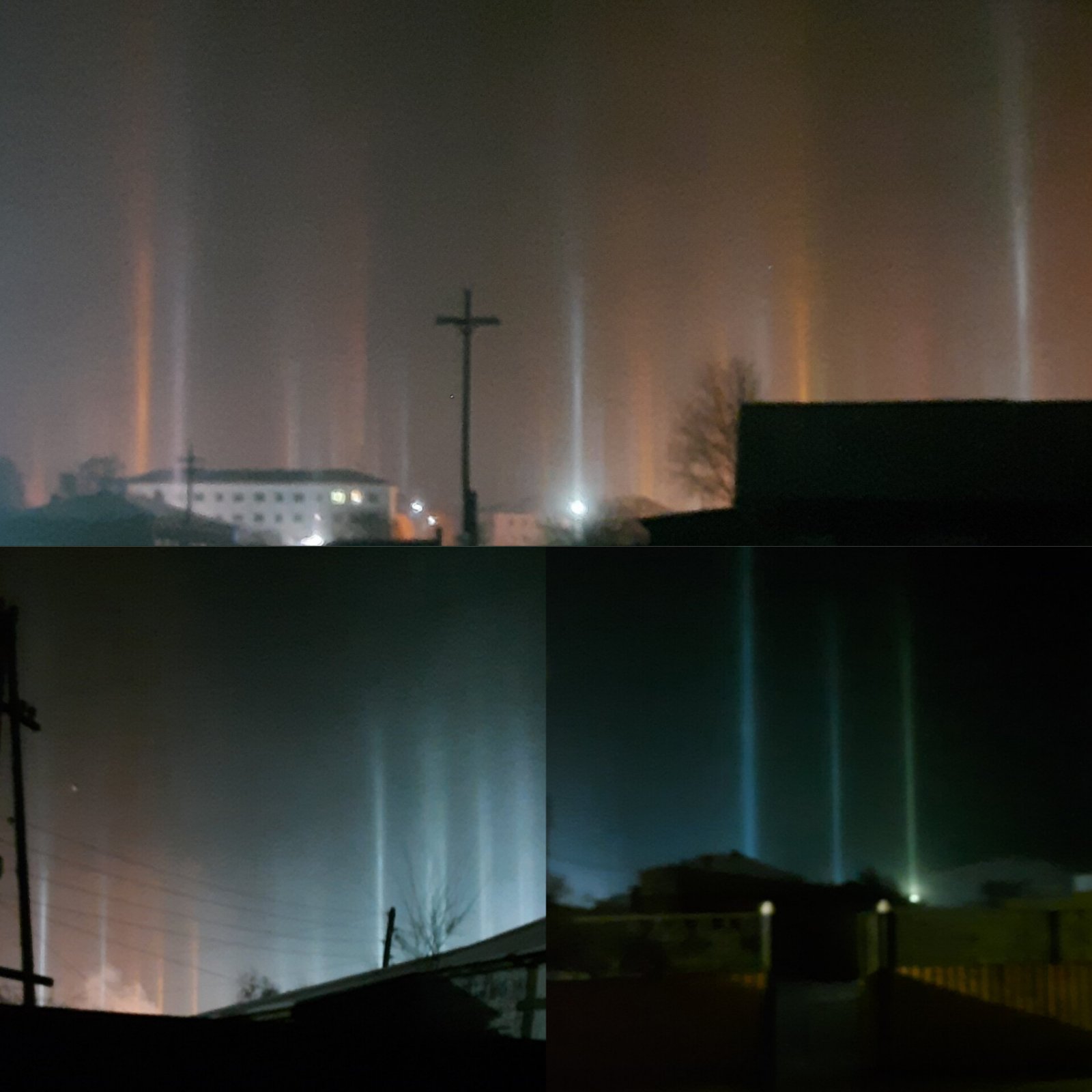 Свет от ярких земных источников – к примеру, от фонарей, прожекторов, огней автомобилей, освещённых зданий – идёт снизу и вертикально рассеивается на зависших в воздухе кристаллах. В итоге появляется такой вот «столб». Жители Кяхтинского района Бурятии засняли это красивейшее явление на камеру за день до Рождества, в ночь с 5 на 6 января.