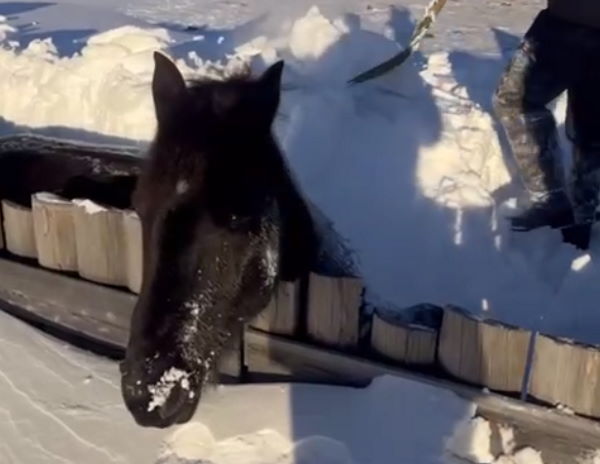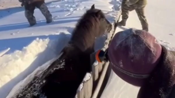 Местные жители заметили животное, которой снегом прижало к забору, на поверхности осталась только голова лошади. Мужчины взялись за лопаты и начали разгребать сугроб. Спустя некоторое время они прокопали траншею, через которую вызволили лошадку.