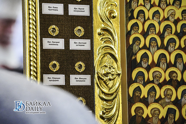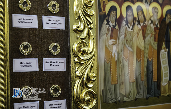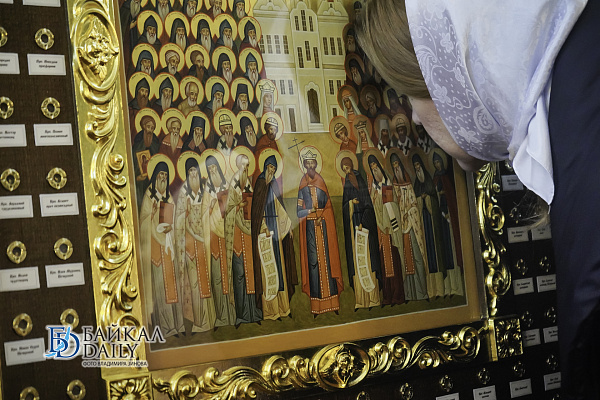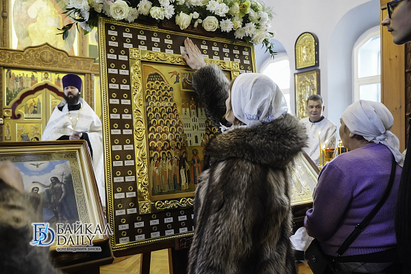 Молебное пение было совершено перед иконой с 89 частицами мощей Киево-Печерских святых. Эта святыня хранится в Сретенском женском монастырю в селе Батурино Прибайкальского района. Икону доставили в Одигитриевский собор специально для молебна.