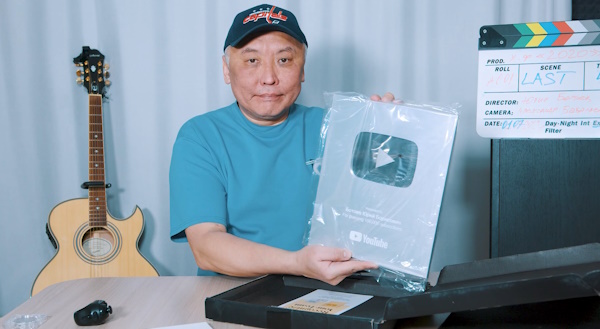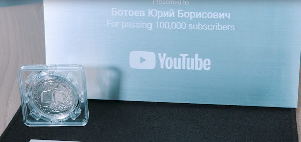 Награду Юрию привёз курьер. Режиссёр сделал распаковку на камеру и пояснил, при каких условиях дают серебряную кнопку.