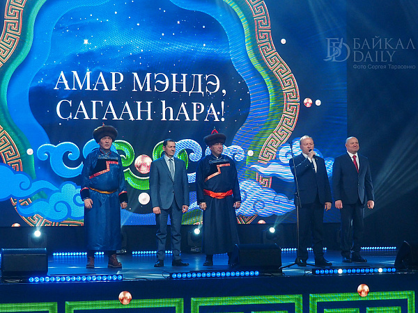 - Амар мэндэ хүндэтэ нүхэд! Шэнын нэгэнэй hайндэрөөр амаршалнаб! Сагаан hарын үглөөе сарюун хангалаар угтажа, шэнэ жэлдэ амар амгалан, буянтай, жаргалтай ябая! Дорогие земляки! Всех поздравляю с нашим праздником! С праздником Белого месяца, с Новым годом по восточному календарю, с нашим Новым годом. Хочу пожелать в Новом году всем скорейшей победы, возвращения к нормальной мирной жизни. Чтобы наши ребята быстрее вернулись домой с победой. Чтоб все на нашей земле стало лучше, радостнее, счастливее. Чтобы у всех все было хорошо. Сагаан hараар сагаалганаар! - поздравил гостей глава Бурятии Алексей Цыденов.