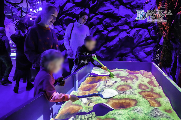 Затем можно познакомиться с полезными ископаемыми, которые добывают на территории России. На небольших картах с названиями ископаемого показаны все его места добычи. Рядом золото и другие драгоценности можно «откопать» в оригинальной песочнице.