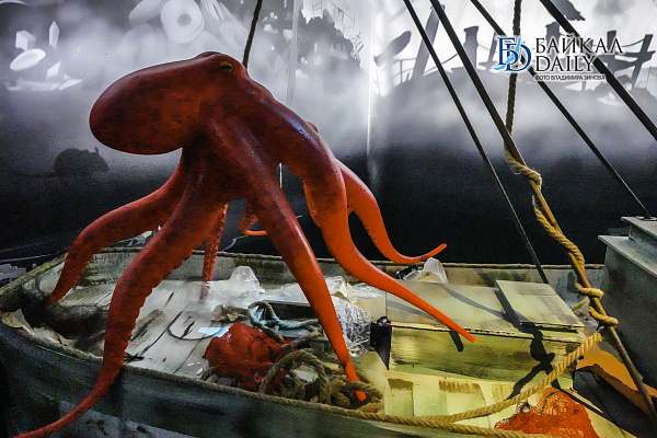 Продвигаясь по павильону, в интерактивном формате можно узнать о последствиях загрязнения водоёмов. Посетителям предлагают бросить в бассейн стекло, пластик, где они сразу увидят результаты – погибает рыба и другие обитатели озера. Живность водоёма здесь демонстрируют с помощью световых проекторов.