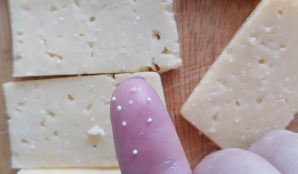 В Северобайкальске обеспокоены качеством сыра, который продают в одном из местных магазинов. Местная жительница обнаружила в нём какие-то странные вкрапления, похожие на гранулы.