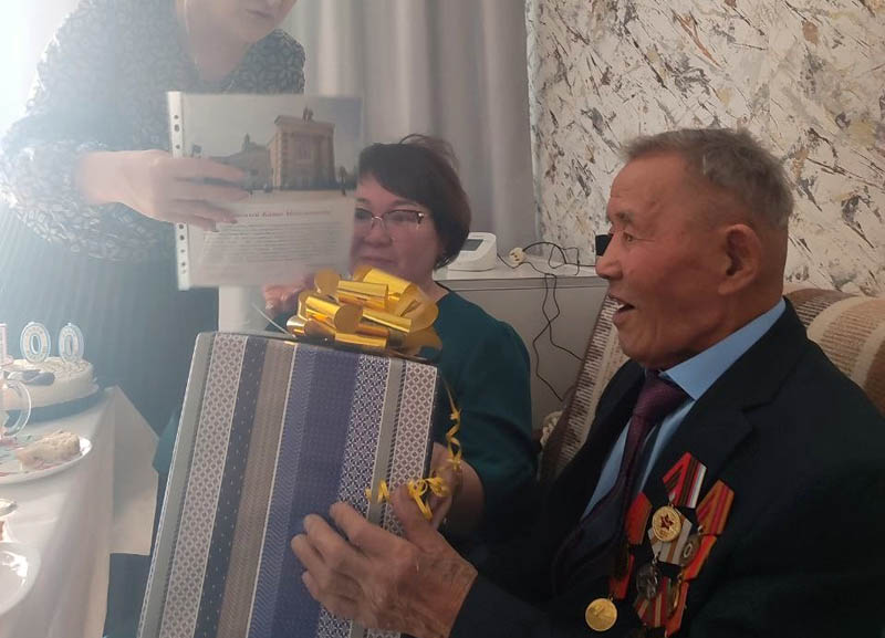 За хлебосольным гостеприимным столом в юбилейный день рождения собрались дети, внуки и правнуки Бато Монголовича. С вековым юбилеем ветерана также поздравили представители администрации Октябрьского района, пожелав много счастливых дней в окружении любящих близких.