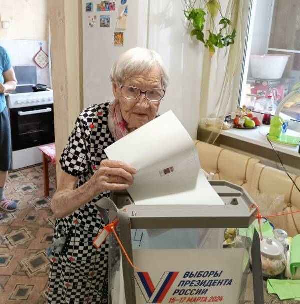 Свой голос на выборах президента России отдала 102-летняя жительница Бурятии Лидия Ивановна Жарникова. Она воспользовалась правом голосования на дому.