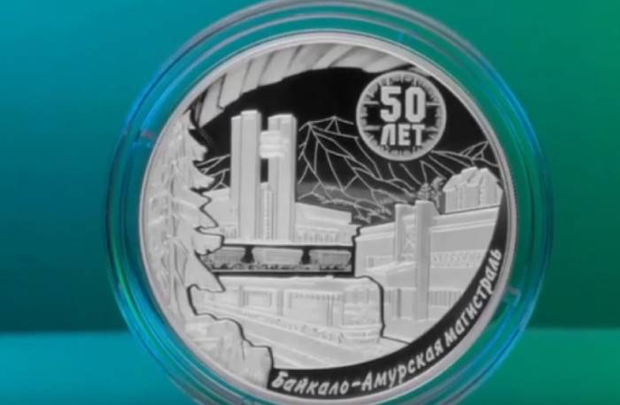 Банк России выпустил в обращение памятную серебряную монету номиналом 3 рубля, посвящённую 50-летию начала строительства Байкало-Амурской магистрали. Монета вошла в серию «Исторические события».