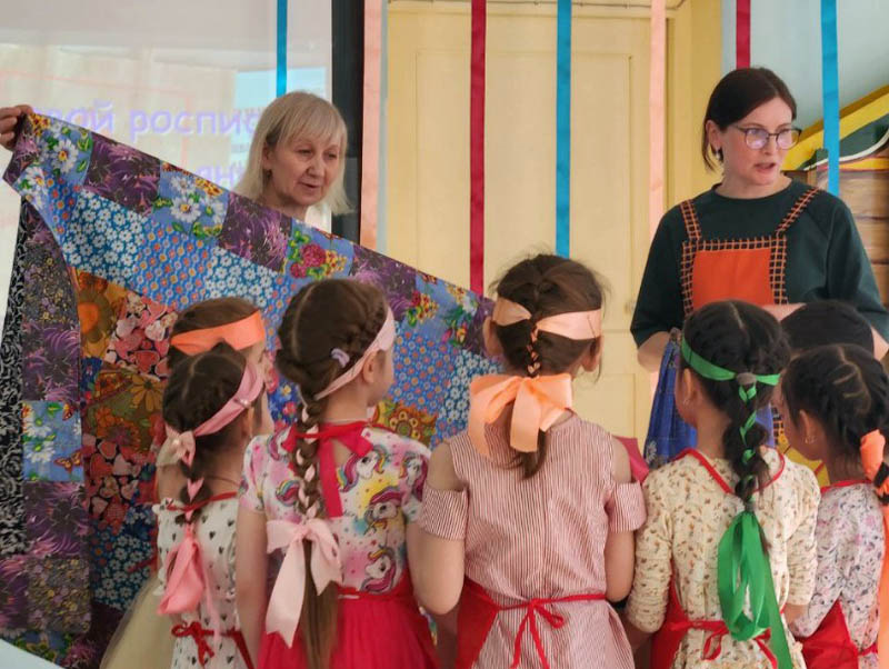 Так, в детском саду № 95 «Рябинушка» проходят занятия, где дети осваивают роспись на ткани и создают принты, которые присутствуют на одежде семейских в технике «эбру», учатся домовой росписи и т.п.