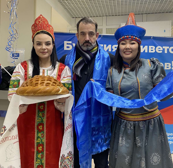 Сегодня утром, 29 марта, в Улан-Удэ прилетел народный артист России, депутат Госдумы Дмитрий Певцов. Ему устроили торжественную встречу в аэропорту «Байкал». Актёра встречали с хлебом-солью и с бурятскими хадаками.