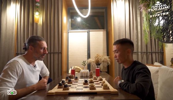 После этого он отправился пробовать самое известное национальное бурятское блюдо вместе с юмористом Валерием Гуляевым. Они продегустировали буузы, приготовленные из рубленого мяса, затем - фаршированного. Однако вкусная и сытная история на этом не закончилась. Федерико Арнальди и Валерий Гуляев сыграли в шашки, вместо шашек же здесь были маленькие буузы.