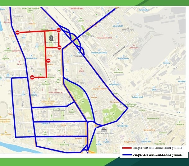 Улан-удэнцев призвали быть внимательными и заранее выбирать пути объезда закрытых участков дорог в дни подготовки и проведения праздничных мероприятий, посвященных Дню Победы.