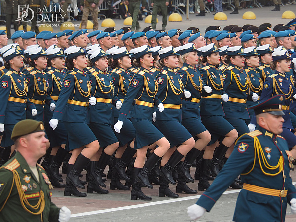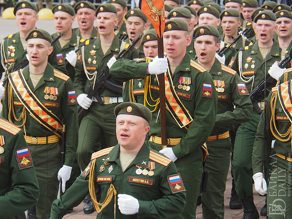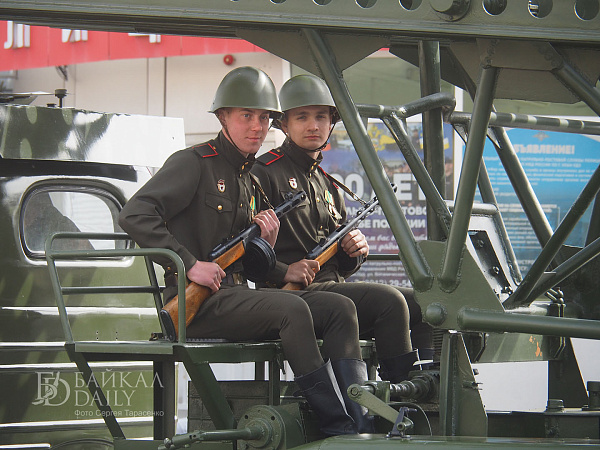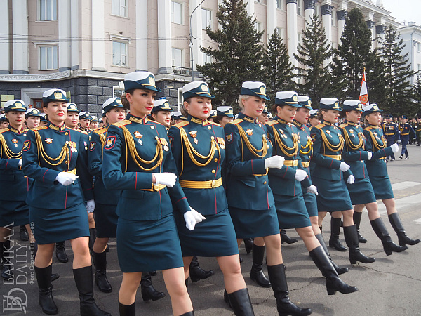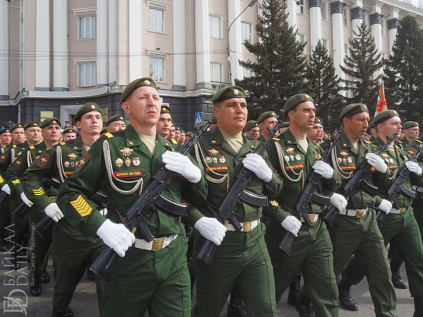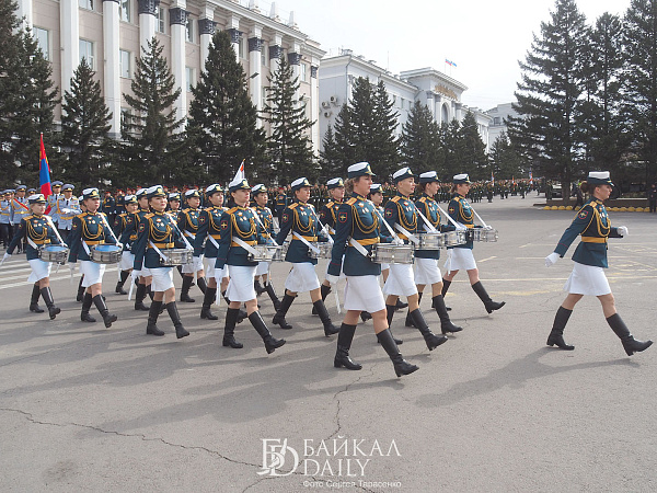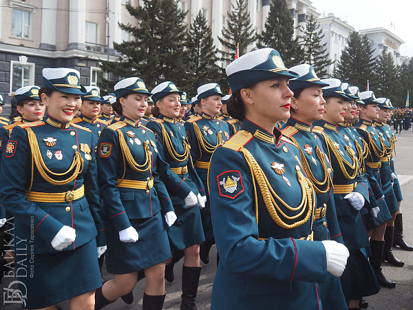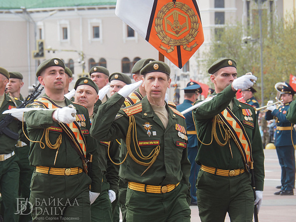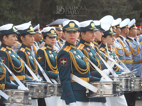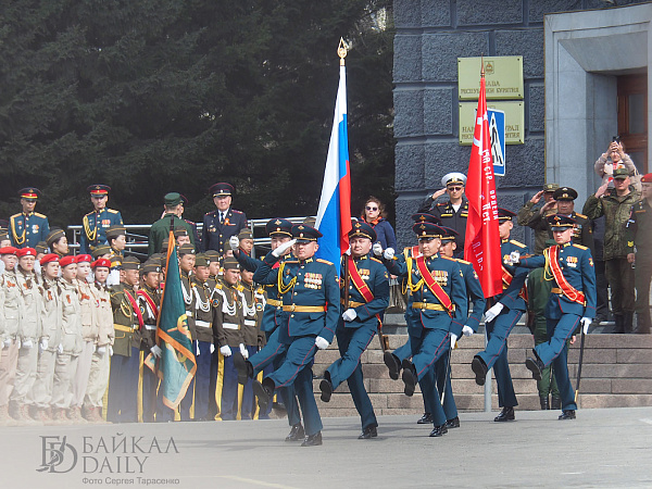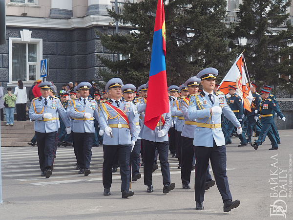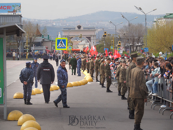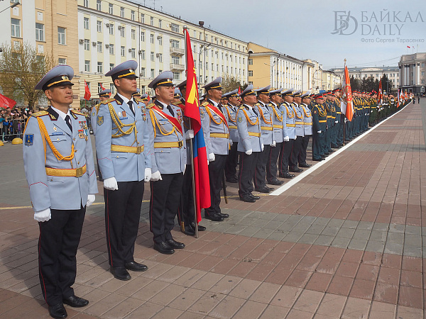 Всего на главной площади Улан-Удэ маршировали более 1,5 тысяч человек – представители Вооружённых сил Монголии, представители общевойсковых армий, военные артиллерийской бригады, зенитно-ракетных соединений, связистов, представители РХБ защиты, Воздушно-десантных войск, Воздушно-космических войск, войск материально-технического обеспечения и сводных парадных расчётов женщин-военнослужащих. Перед трибуной также прошли военнослужащие 600-го авиационного полка, вновь сформированного спустя 25 лет.