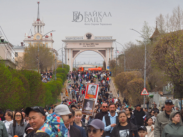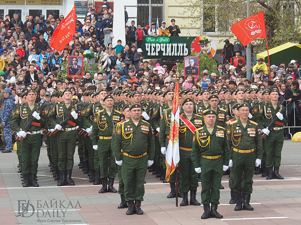На улице светило яркое солнце, дул лёгкий ветерок, а термометр показывал 15 градусов тепла. Зрители начали собираться ещё за два часа до парада, чтобы занять лучшие места. Горожане приходили с флагами России, у многих на одежде были портреты своих близких – участников войны и тружеников тыла. Как сообщал «Байкал-Daily», шествие «Бессмертного полка», как и в прошлом году, отменили из-за соображений безопасности.