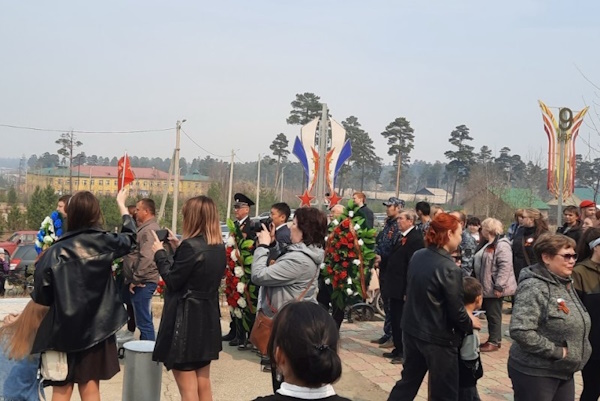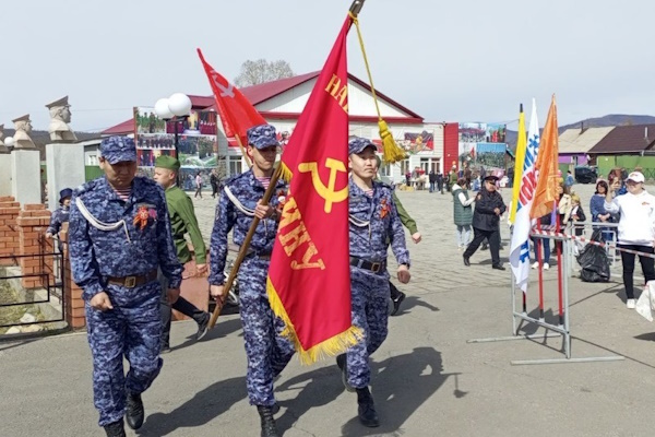 В Баунтовском эвенкийском районе сотрудники вневедомственной охраны пронесли Знамя Победы на торжественном митинге, а затем спели военные песни для односельчан, завершив концерт песней «День Победы».