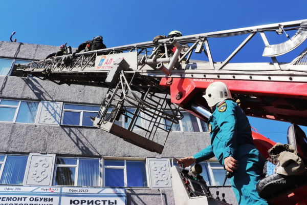 В Центральном доме быта в Улан-Удэ потушили условный пожар. По легенде, возгорание случилось на четвёртом этаже здания.