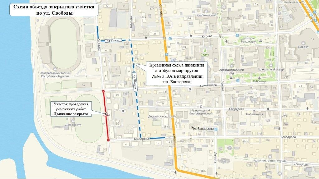 В ближайший вторник, 4 июня, в столице Бурятии перекроют улицу Свободы. Причина тому – аварийно-восстановительные работы по строительству сетей водоснабжения и водоотведения.