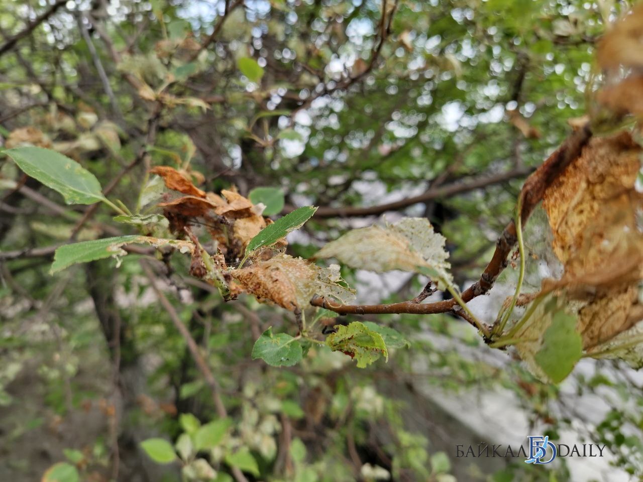 Деревьям в столице Бурятии угрожает горностаевая моль. Она атаковала зелёные насаждения в Железнодорожном районе, в частности – в микрорайоне ПВЗ и на проспекте 50-летия Октября. Кадры с прожорливыми вредителями накануне облетели многие местные паблики.