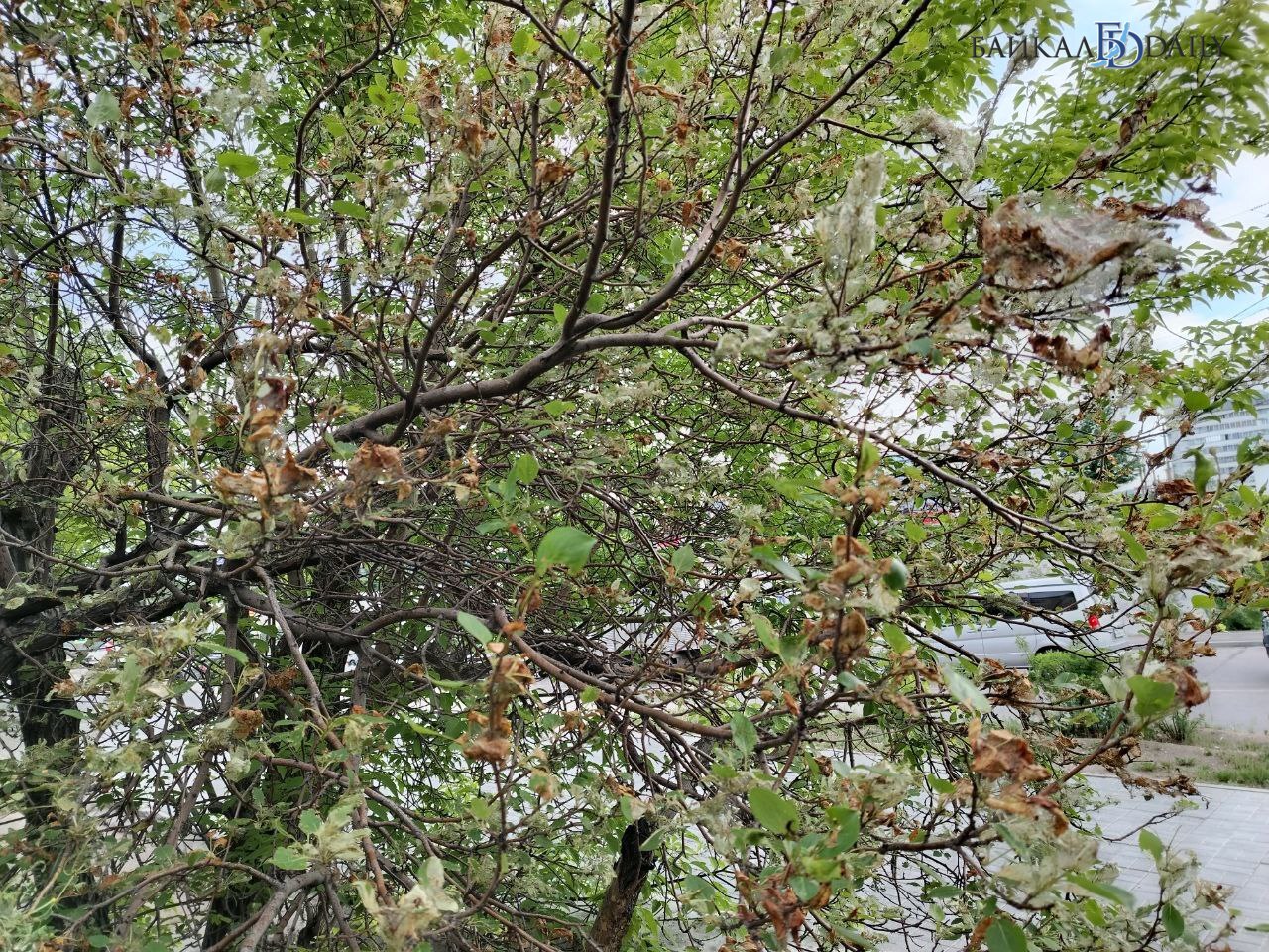 Как сообщили в муниципальном центре управления Улан-Удэ, в конце апреля, после зимовки, гусеницы начинают плести паутину, которая плотно окутывает ветви и стволы деревьев – как правило, это яблони и груши, но вредители также могут облюбовать ивы, дубы и ясени.