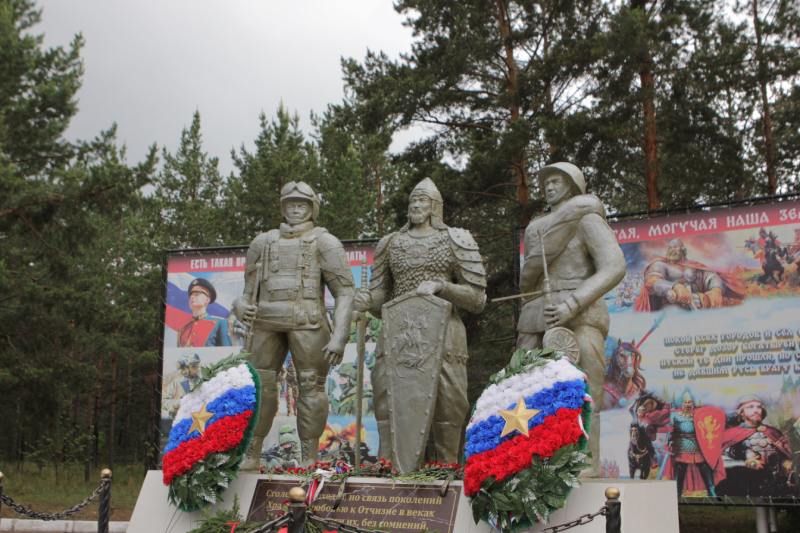 На мемориале «Сквозь сотни лет и тысячи побед» изображены три воина: русский богатырь, советский воин и современный боец. Это дань памяти и уважение к мужеству, отваге и героизму многих поколений наших предков.