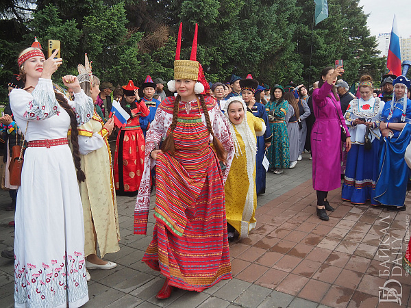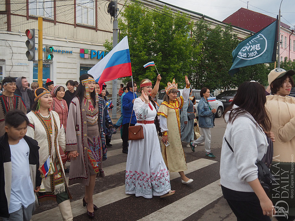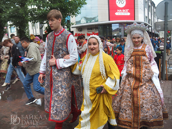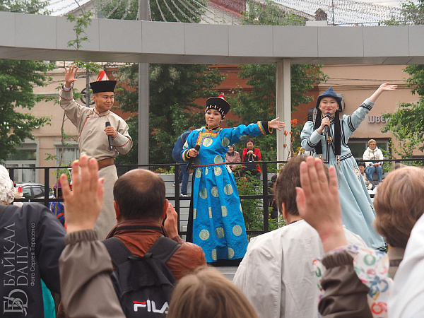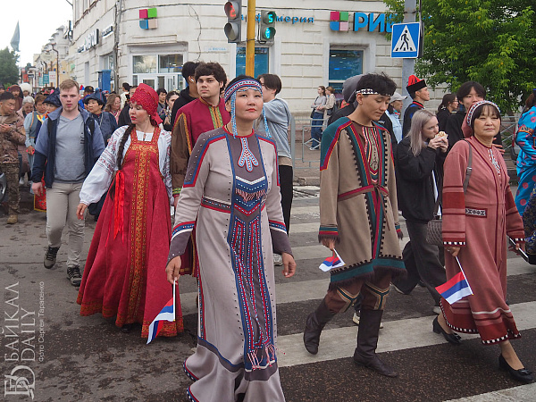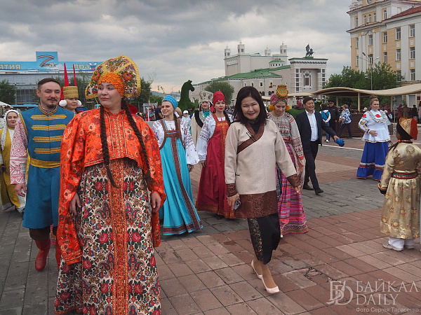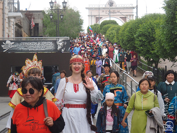 В честь Дня России в Улан-Удэ состоялся #дэгэлфлешмоб. Его участники прошли по центру города в национальных костюмах - бурятских дэгэлах и русских сарафанах. Они собрались на площади Советов, спустились по «Арбату», а конечной точкой стала площадь Революции.
