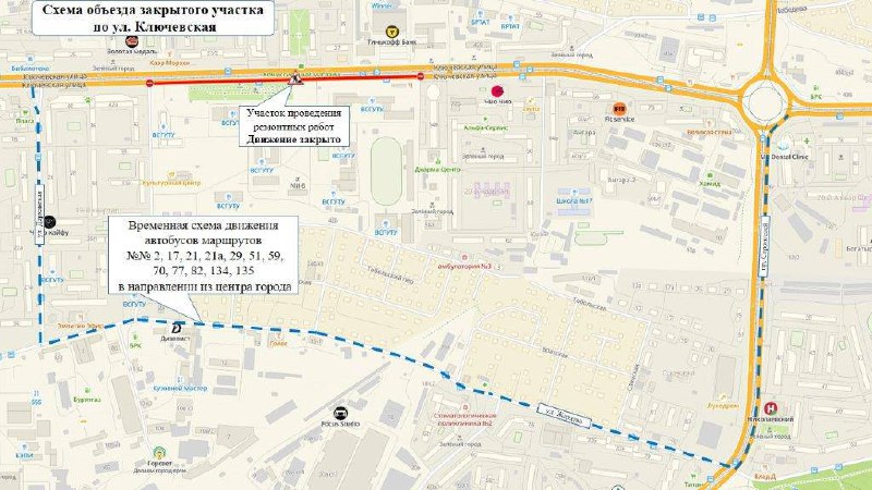 Все работы разделили на три этапа. Пока в разгаре второй, на участке от улицы Дарханская (остановка «Юношеская библиотека») до «Товаров Бурятии». После стартует третий – от Сахьяновой до Дарханской. Там ремонт завершится к концу августа.