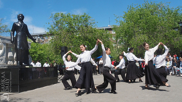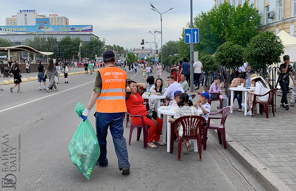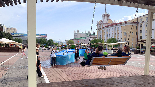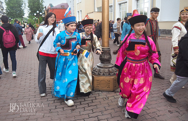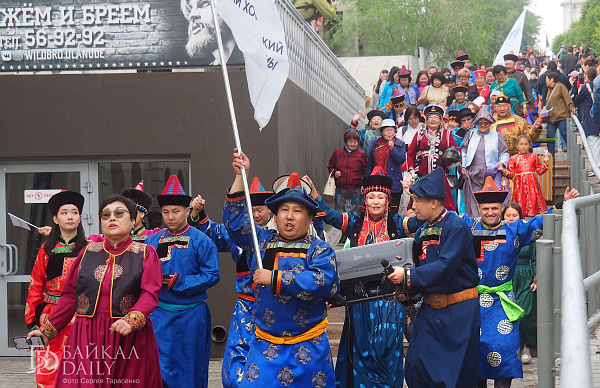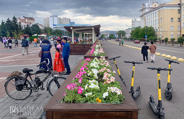 Флешмоб в национальных костюмах снова прошёл в центре Улан-Удэ. В этот раз кроме дэгэлов были сарафаны и кафтаны. В день города проезжая часть у площади Советов превратилась в кафе, а берёзы в кадках — в ёлки.