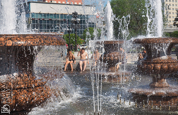 - Ёлки весьма печальные. Выживут ли? Почему бы сразу не высадить пальмы, например? Можно даже искусственные, чтоб не замёрзли. Почему бы не разрешить купаться в фонтанах? Весело и не жарко. На отремонтированной набережной перекрыты все спуски к воде. Чтобы попасть на берег, улан-удэнцы исполняют акробатические этюды. И всё равно ходят по воде. Лето же! Кстати, арбузы и черемша теперь поспевают в одно время, — заметил фотограф Сергей Тарасенко.