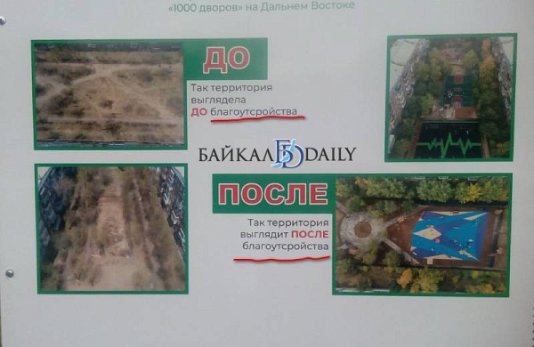 Как сообщал «Байкал-Daily», именно на этой площадке уже третий год стоит информационный стенд с ошибками в правописании и с лживыми фотографиями того, как площадка якобы выглядела до ремонта.