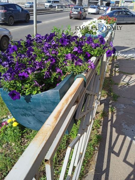 Улан-Удэ этим летом украсили навесные кашпо с петуниями разных сортов – фиолетовыми, красными и белыми. Всего таких кашпо более 200 – на улицах Терешковой, Ербанова, Сухэ-Батора, Лимонова и других, рассказали в городской администрации.