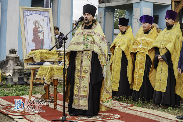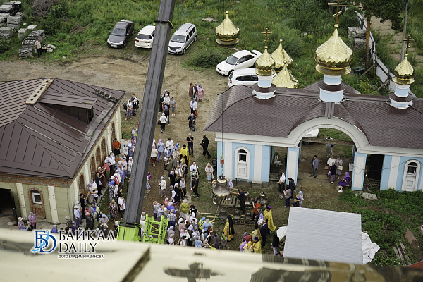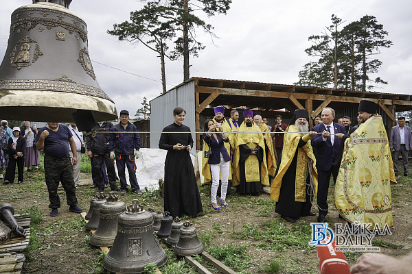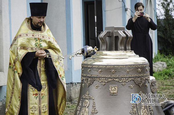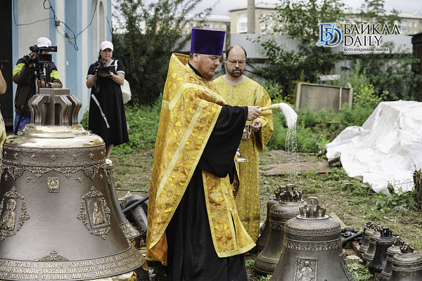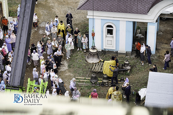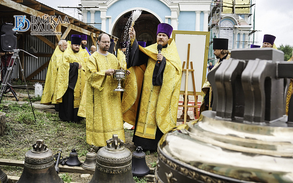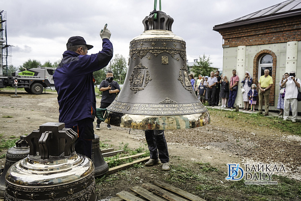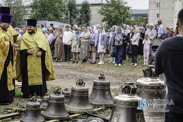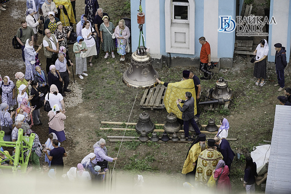 В Улан-Удэ состоялось освящение колоколов для строящегося Успенского кафедрального собора в парке имени Орешкова. После освящения их подняли на колокольню.