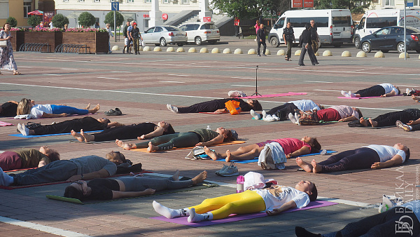 Упражнения выполняли прямо на брусчатке, для этого с собой участники принесли специальные коврики, а свидетелями йога-марафона стали горожане, спешащие на работу. Приветствие Солнцу началось в 8:00.