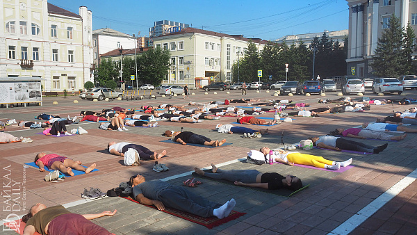 Йога-марафон прошёл сегодня утром на главной площади Улан-Удэ. По подсчётам организаторов, собрались 108 любителей и практиков йоги.