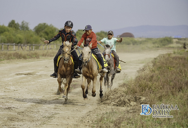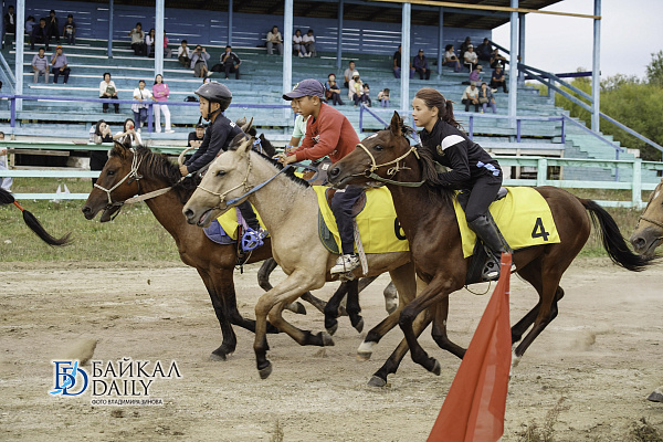 В конных скачках участвовали всадники на лошадях бурятской породы. Забеги провели на дистанциях от 6 до 21 километра.