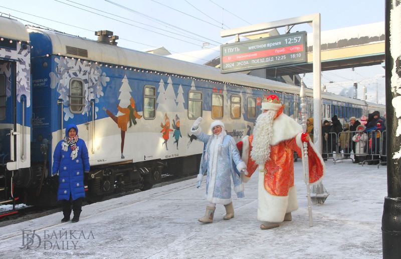 - Поезд для Деда Мороза подготовили железнодорожники. Это празднично оформленная передвижная резиденция, в голове которой — паровоз, а в составе: салон-приёмная, сказочная деревня для игр и квестов, кукольный театр, лавка с сувенирами, ресторан и буфет для чаепитий и т. д., - сообщили в пресс-службе Восточно-Сибирской железной дороги.