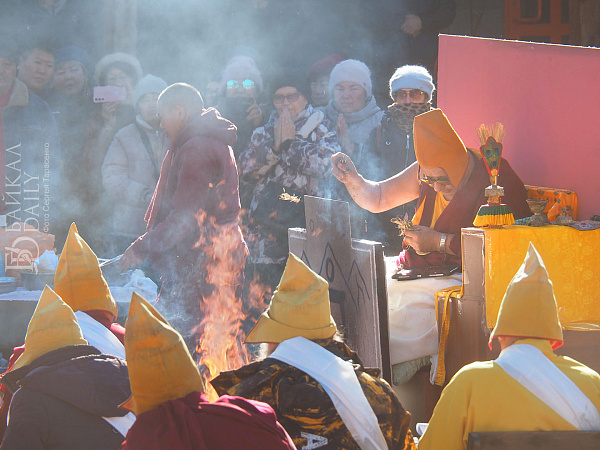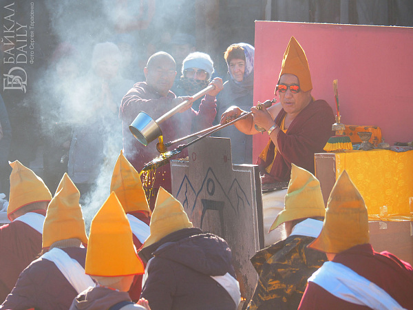Необычный ритуал Жинсриг, посвященный Великой Дакине Трома Нагмо прошёл в дацане на Бабушкина, 188а. Его провели участники пятимесячного ретрита по практике Чод и монгольские ламы во главе с Одсэр Ринпоче ХV. Мантры Ринпоче и ламы читали с планшетов.
